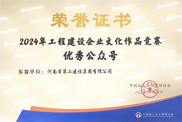 会议公布了2024年工程建设企业文化作品竞赛获奖单位,表彰了在以先进文化引领企业高质量发展领域作出突出成绩的建筑业企业。乐鱼线上平台(集团)官方网站提报的案例《筑牢文化根基 赋能发展引擎》获评“2024年工程建设企业文化建设优秀案例”,公众号(@河南二建集团)获评“优秀公众号”,网站(/)获评“优秀网站”。其中,乐鱼线上平台(集团)官方网站已连续三年获评“工程建设企业文化建设优秀案例”。