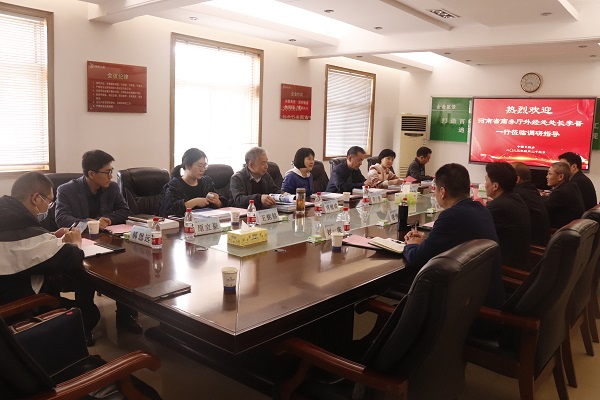 4月25日,河南省商务厅对外投资和经济合作处处长李晋、对外投资和经济合作处副处长魏克龙、新乡市商务局四级调研员肖根成、牧野区人民政府副区长秦丹丹一行莅临集…