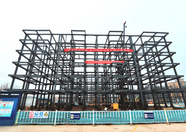 第一项目管理部冀屯灾后重建项目首栋钢结构住宅主体结构成功吊装